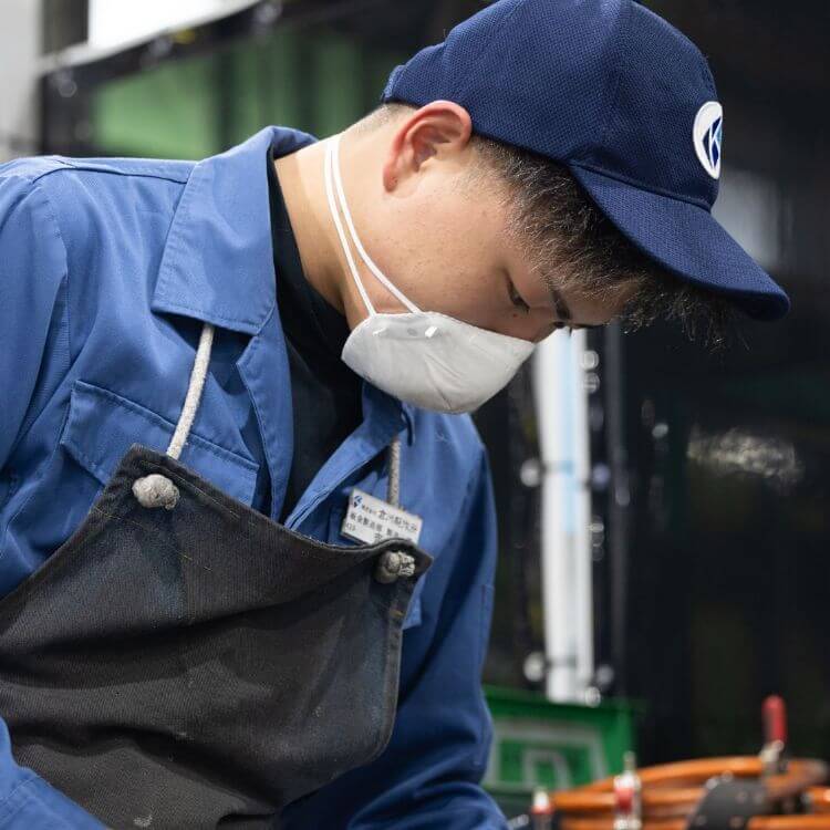 2025年の4月で入社3年目になります。工業高校に通っていたので、色々なものづくりに関われる仕事に就きたいと考えていたのと、倉川製作所は自宅から近くにある企業で私が小さな頃から身近な存在だったこと。就職を意識するようになって、グッとその存在が大きくなりました。加えて、地元のお祭りの先輩が当社に在籍していて「色んな仕事ができる」「やりたいことに挑戦できる環境」と教えてもらったこともあり、倉川製作所に就職することに決めました。ちなみに車で通勤しているのですが、会社まではあっという間の距離。8時頃を自宅を出て、8時半前には必ず到着していますね。